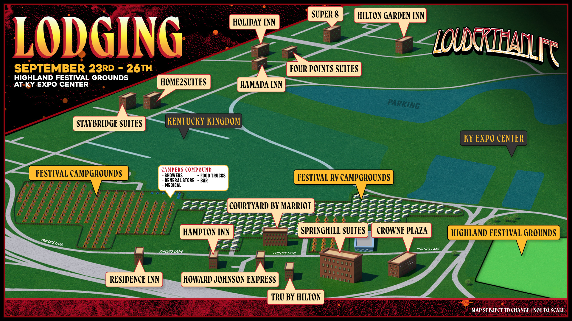 Louder than life 2019 map. Heres an overview of the important stuff. Louder Than Life the Worlds Largest Rock N Roll Whiskey Festival returns to Louisville KY even bigger and better in its fifth year with festival producersdelivering the most spectacular music lineup since the festival began in 2014.